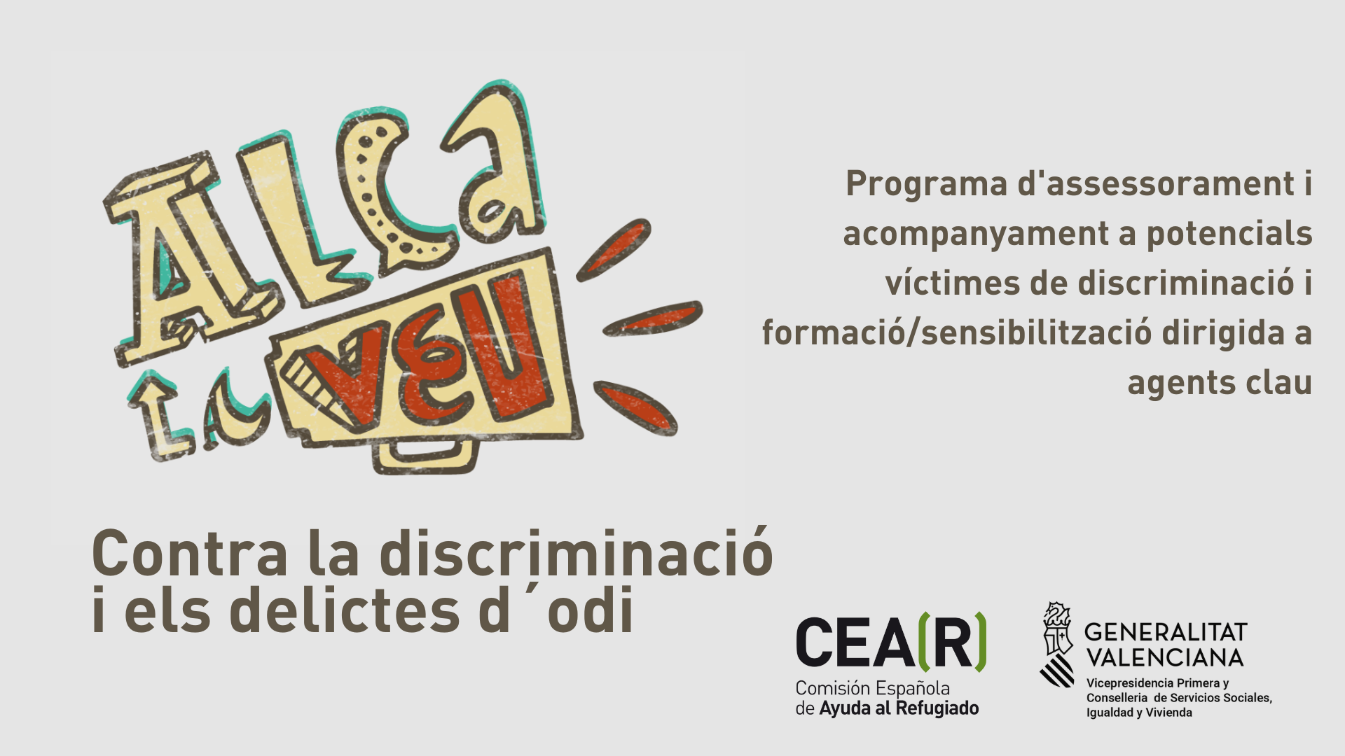 “Alça la Veu contra la discriminació i els delictes d´odi” preten promoure una ciutatania respectuosa amb el Drets Humans, inclusiva i lliure de prejudicis, així com visibilitzar i denunciar situacions de discriminació racial i/o étnica i delictes motivats per l´odi.